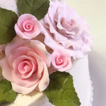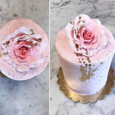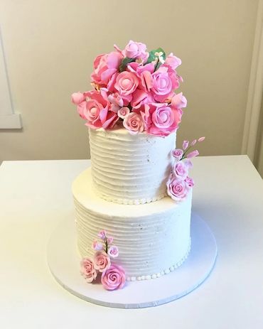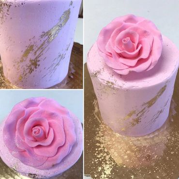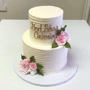 These cakes are covered in smooth or textured vanilla buttercream and decorated with our hand made sugar flowers.