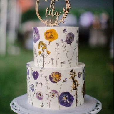 Your choice of flavors and colors decorated with edible pressed flowers.