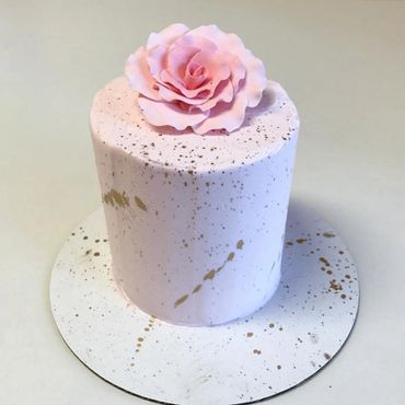 Simplicity at its finest! your choice of cake and filling flavors, covered in a thin layer of buttercream. You can add your choice of fresh flowers, sugar flowers or macarons (at an extra cost).